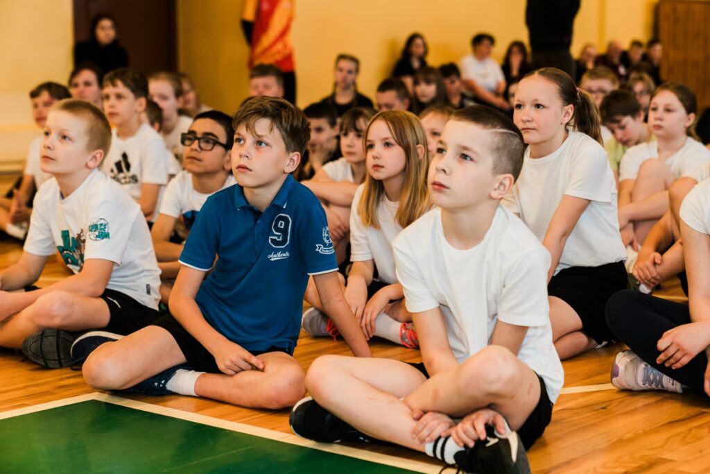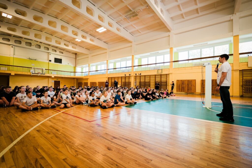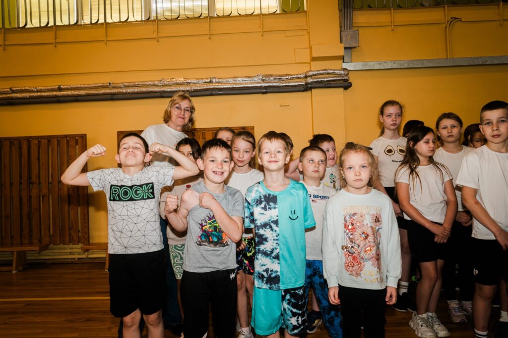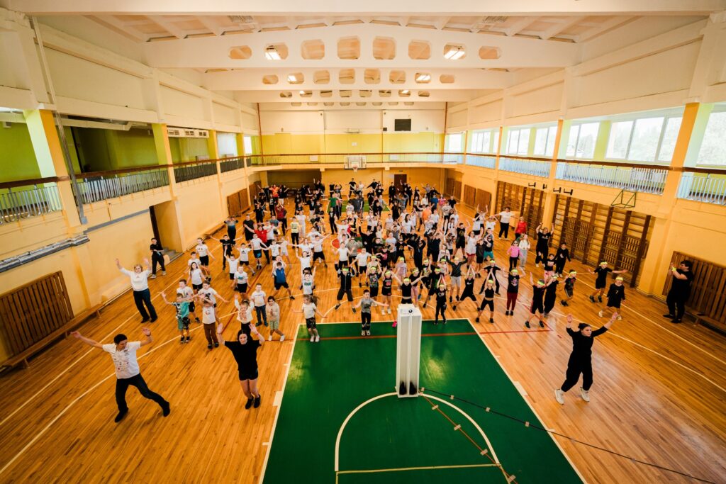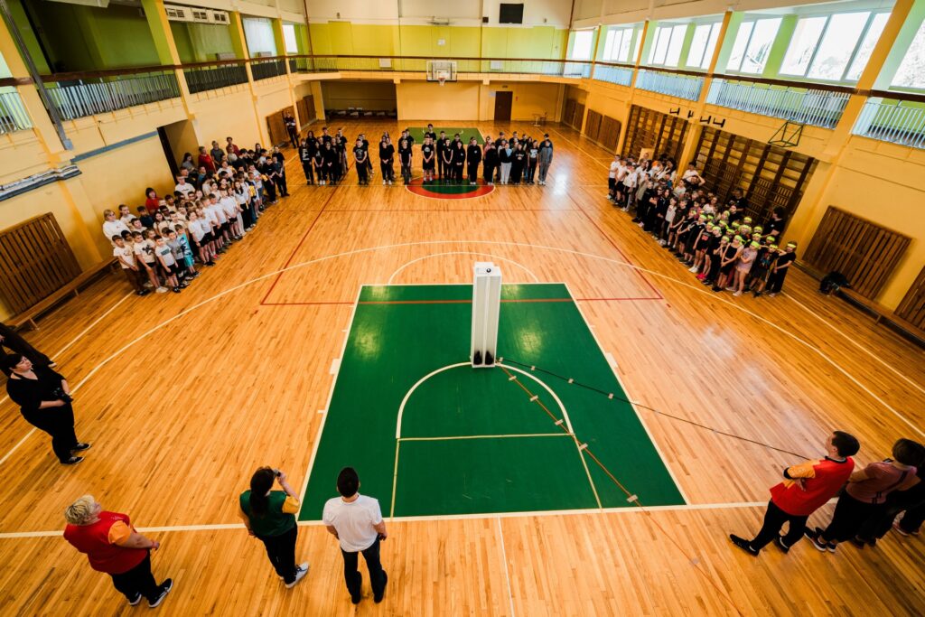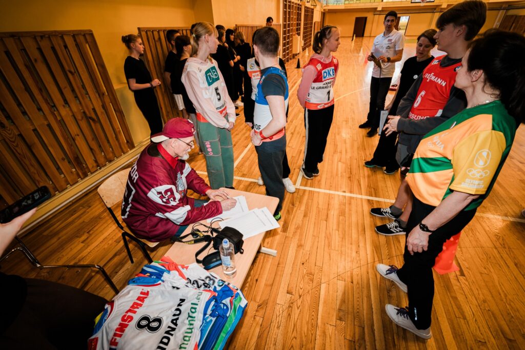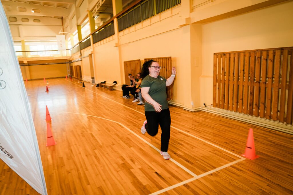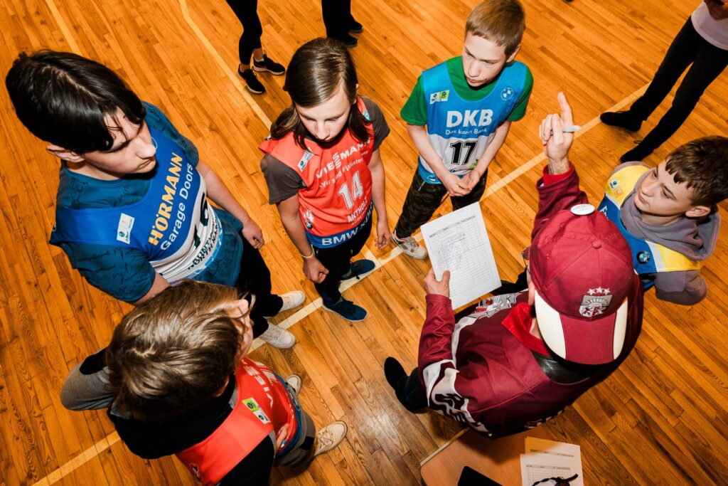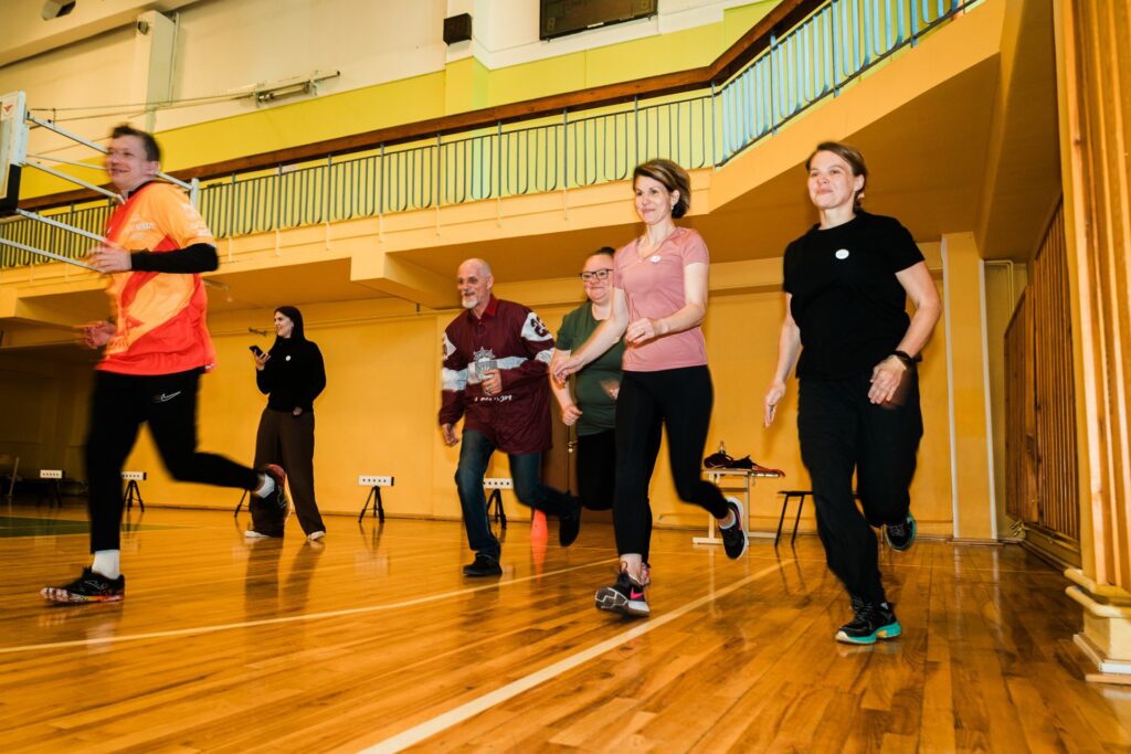 🎯 Olimpiskā karoga pacelšana un kopīga iesildīšanās, pēc kā sekoja biatlona sacensības, kur skolēniem bija jāapvieno ātrums un precizitāte, skrienot un šaujot pa mērķiem ar lāzerieroci.